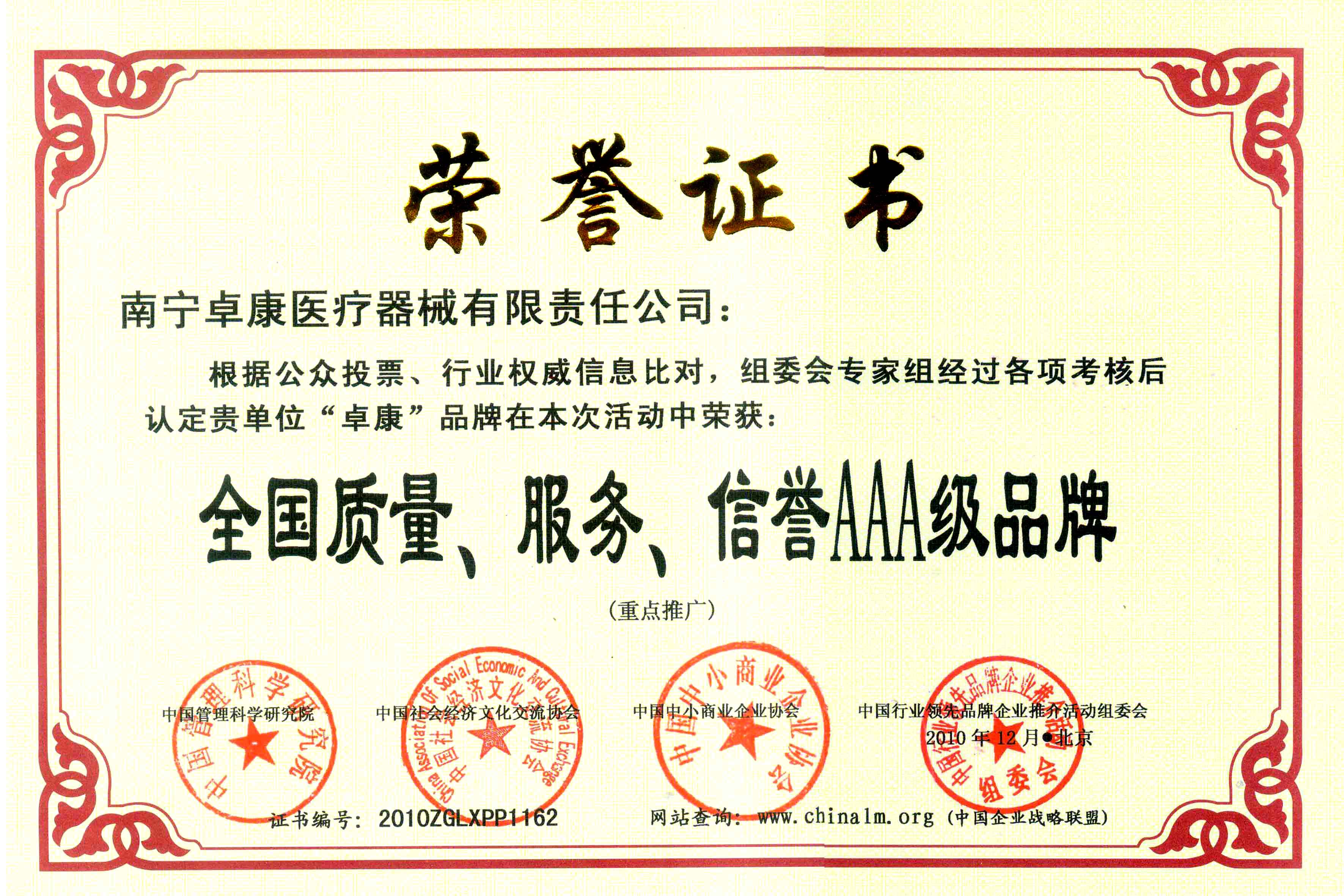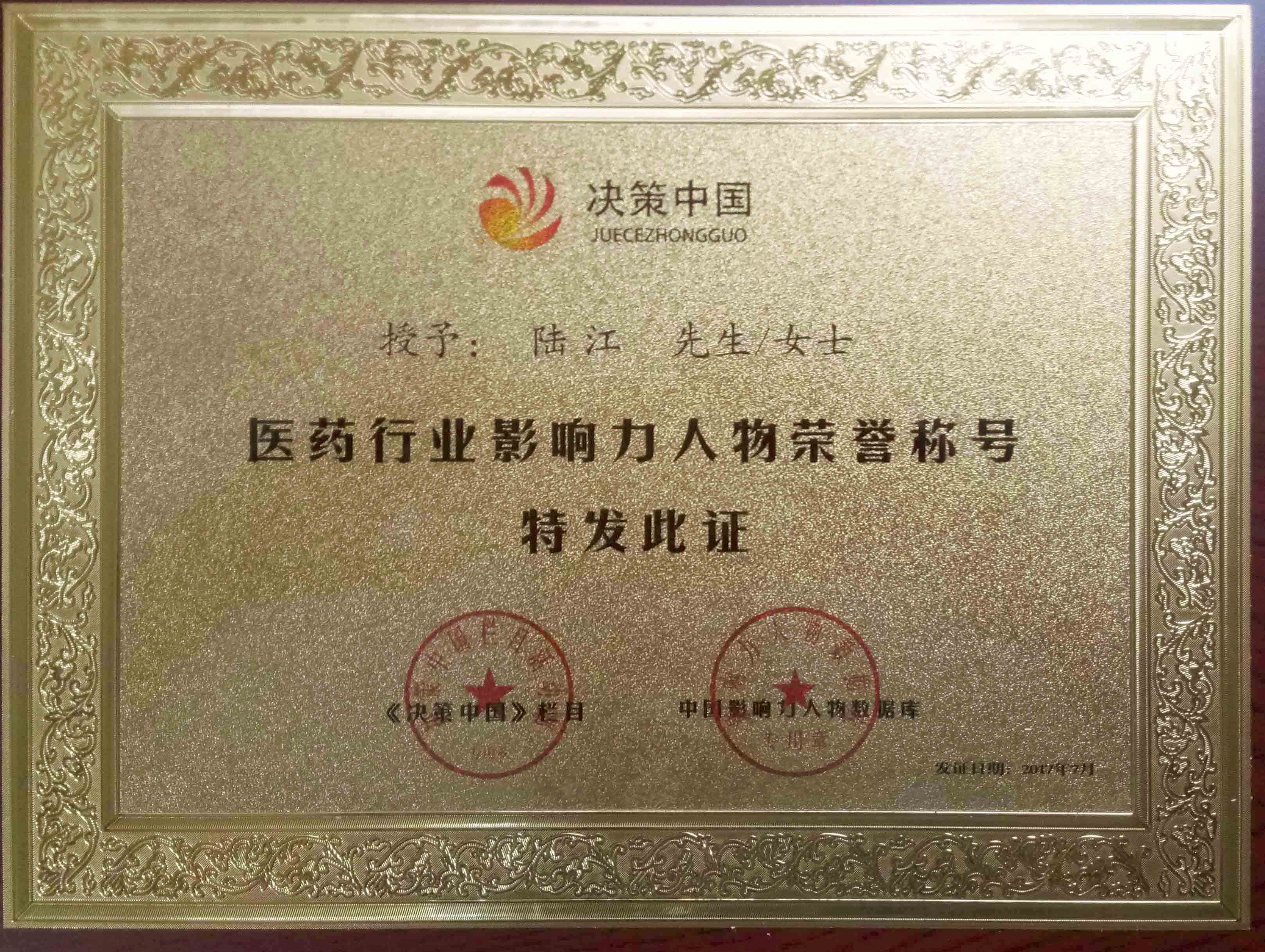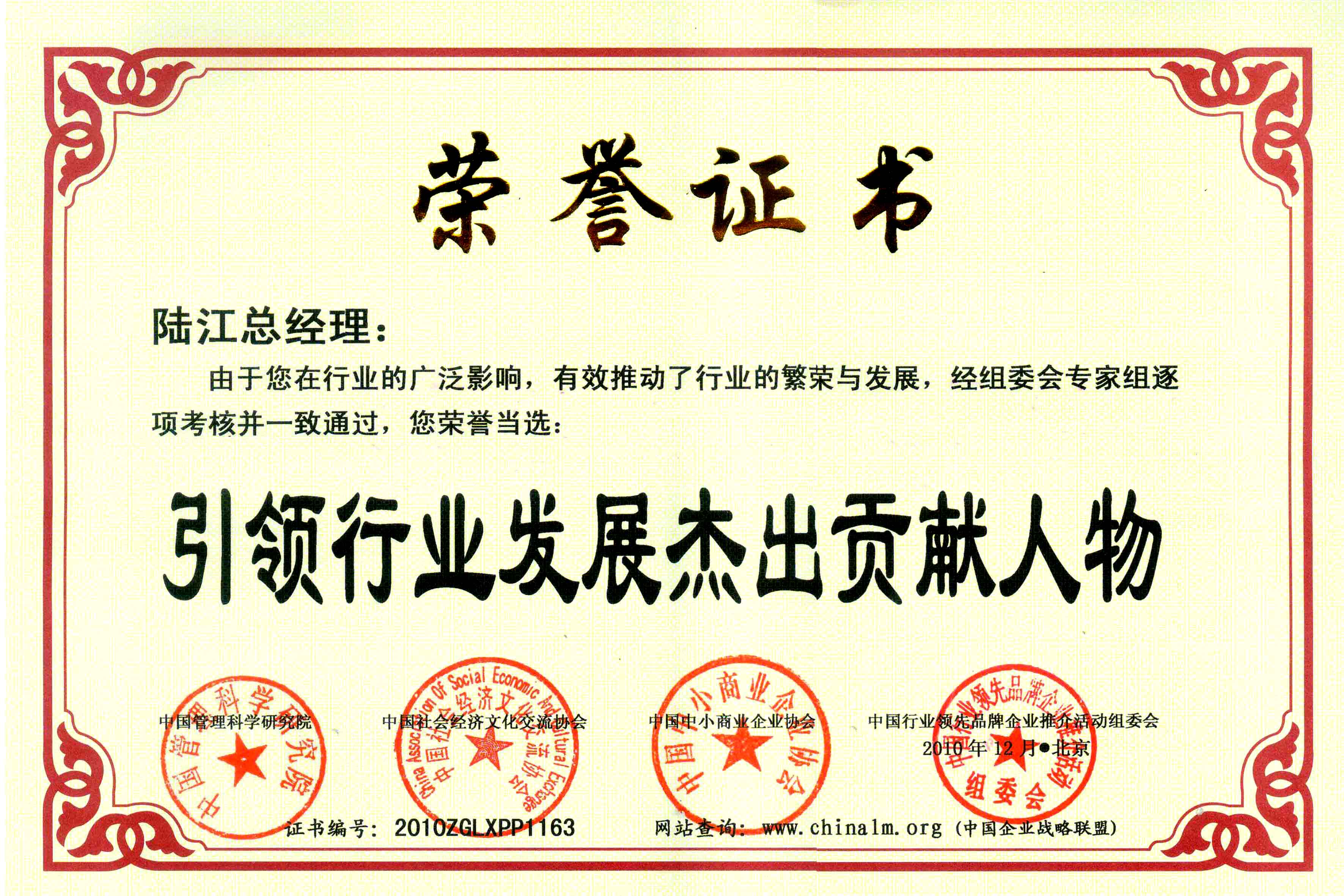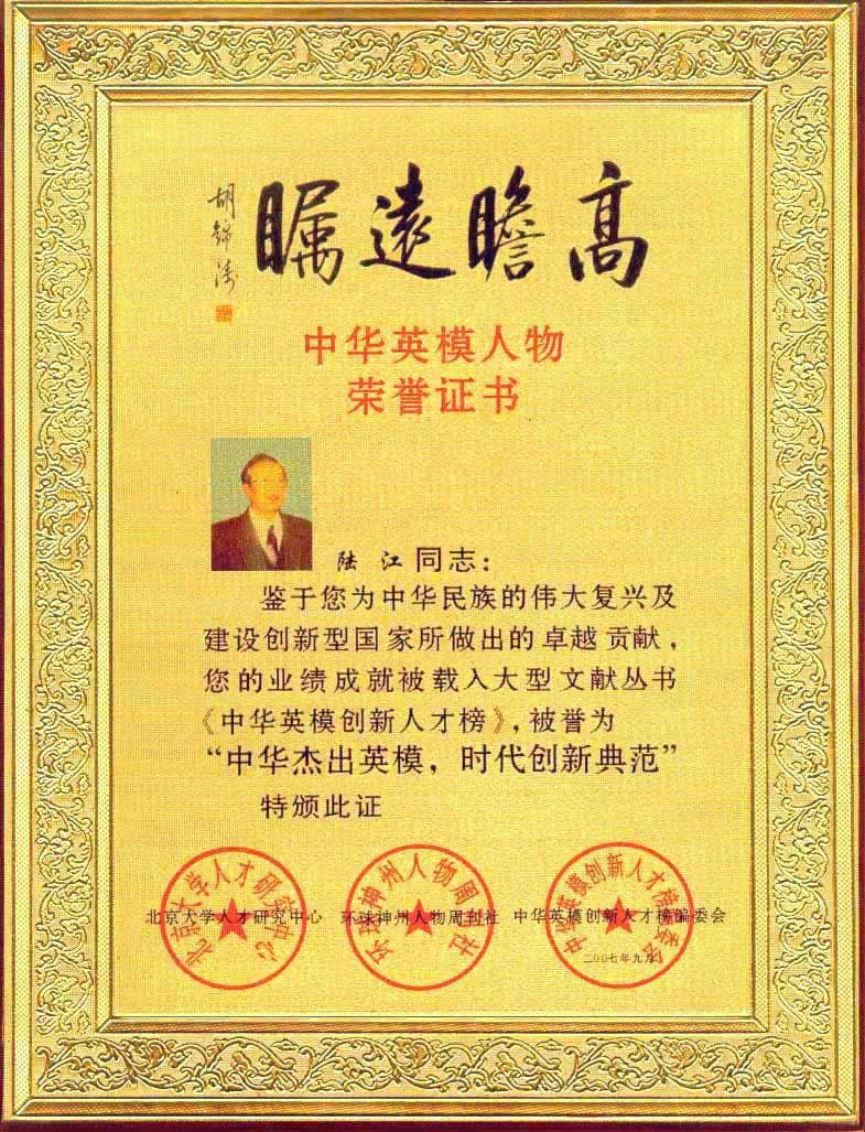 陆江荣获引领行业发展杰出贡献人物证书 --------卓康公司荣获全国质量、服务、信誉AAA级品牌证书