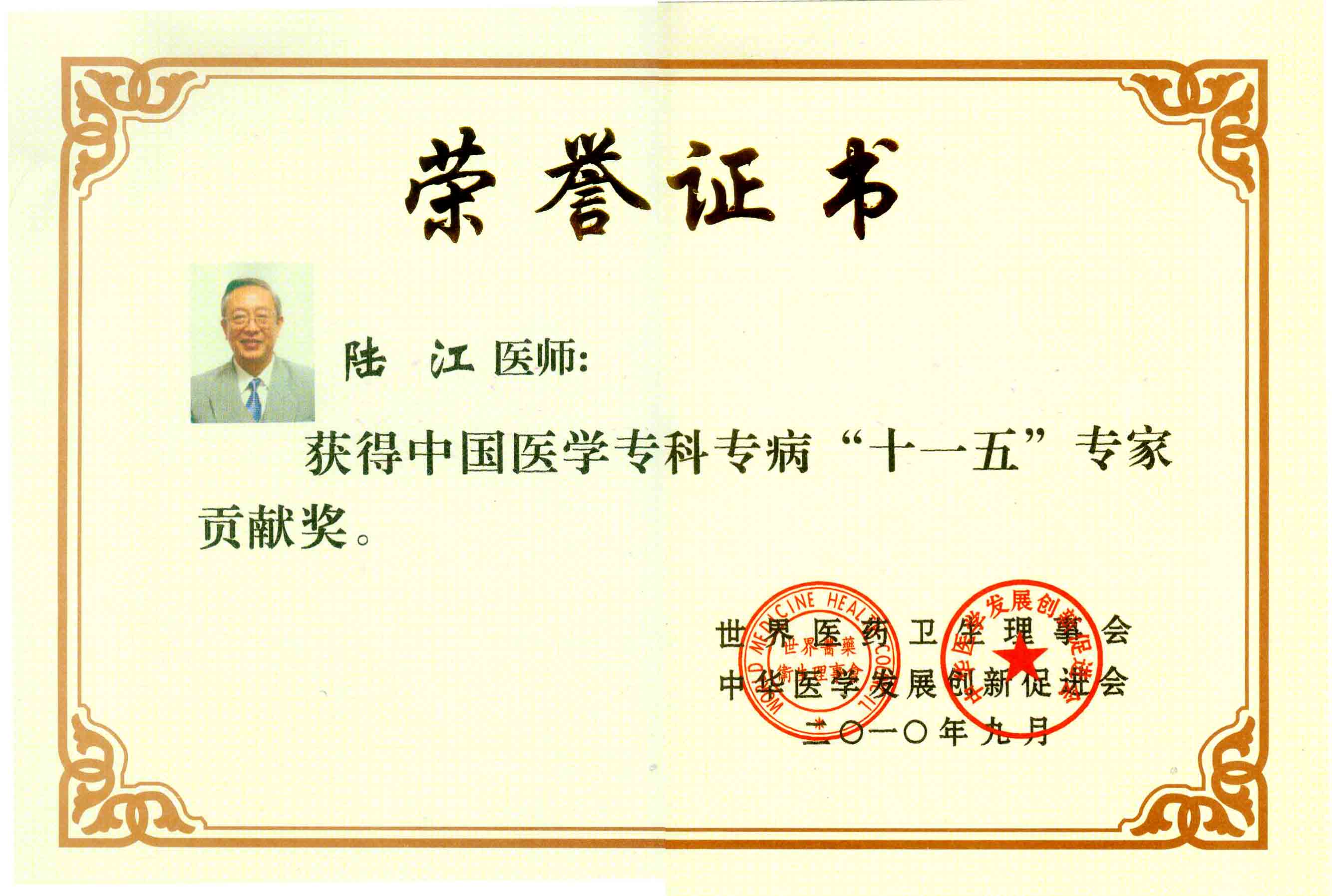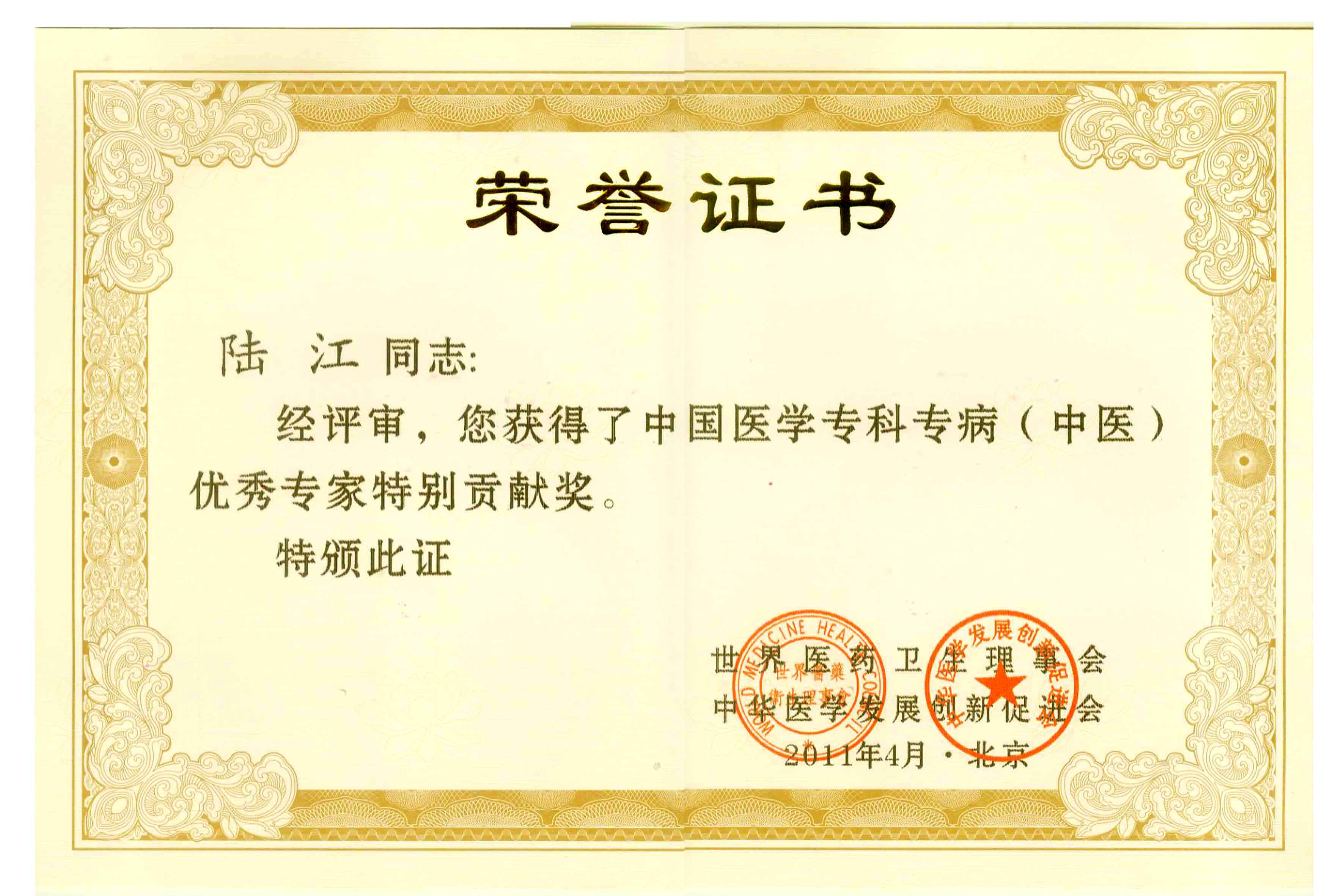 陆江获得中国医学专科专病优秀专家恃别贡献奖